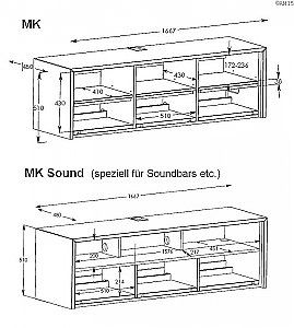 a) Verbreiterung des oberen mittleren Fachs von 51 cm bzw. Verkürzung der Stege des Soundbarfaches*