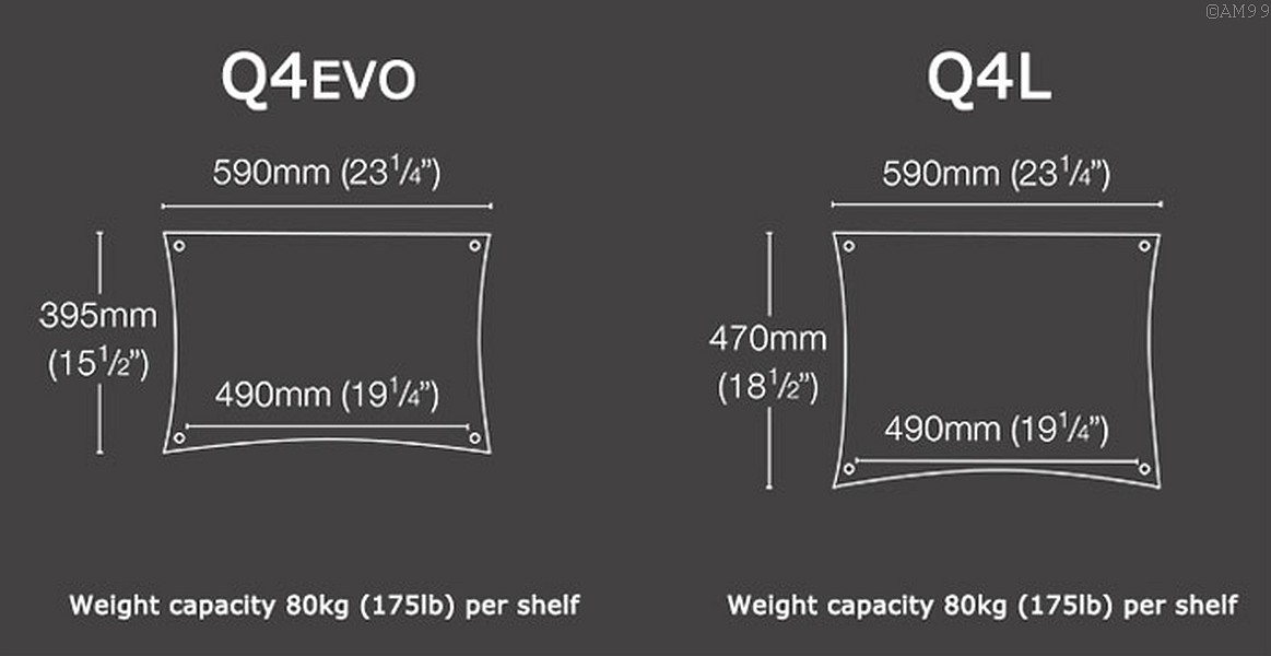 Der Klassiker "Q4" erschien bereits 1995. Diese Serie erfreut sich auch durch die stetigen Verbesserungen wie zuletzt der Evolutionserie weltweit, ungebrochener Beliebtheit. Geblieben ist eines der leichtesten HighFidelity Racks, das sowohl klanglich als auch optisch überzeugt. Testzeitschriften bescheinigen der etwas schwereren Bambus-Variante noch bessere Klangeigenschaften.