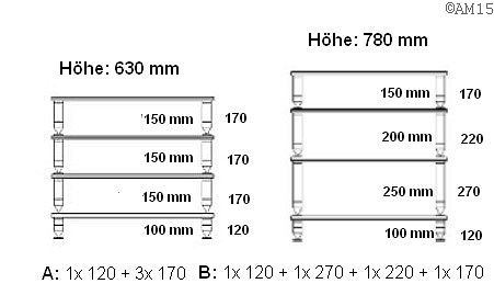 A: 1x Basis 120 mm + 3x 170 mm (Höhe: 630 mm) (wie Abb.)
