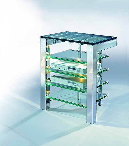 Dieses Rack ist wahlweise auch in SOUNDGLAS erhältlich. Das neu entwickelte Soundglas von SCHROERS setzt sich aus Glas und eingearbeiteten speziellen Polymerschichten zusammen. Die Transparenz des Glases wird dadurch nicht beeinträchtigt. Das Besondere an SCHROERS Soundglas ist zu einem die Absorbation von Geräteschwingungen , und zum Anderen eine Umwandlung in Wärme durch die Polymerschichten (Constrained Layer Damping). Sie werden von dem klanglichen Zugewinn begeistert sein.