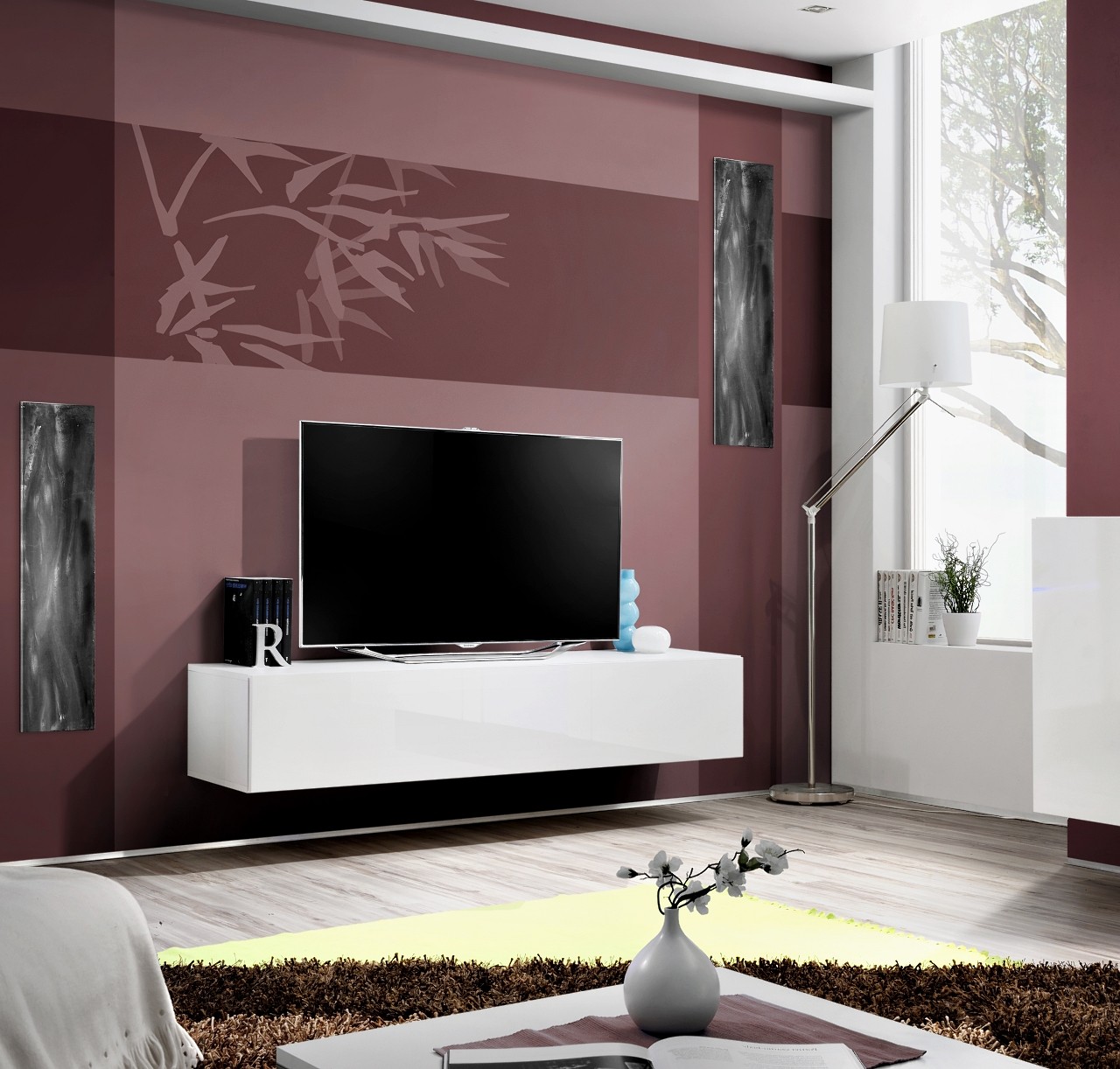 - 1x TV- Board: mit einer Hochglanzklappe, innen drei offene Fächer, Klappenhalter enthalten.