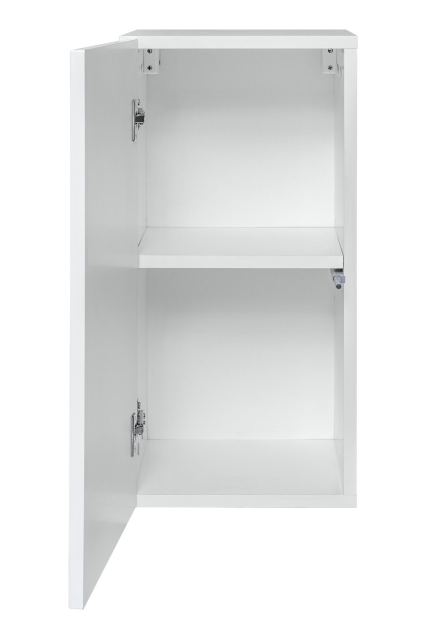 - 2x Hängeschränke: PVC Hochglanztür, beidseitig montierbar. Innen eine normale Ablage, 2 Fächer