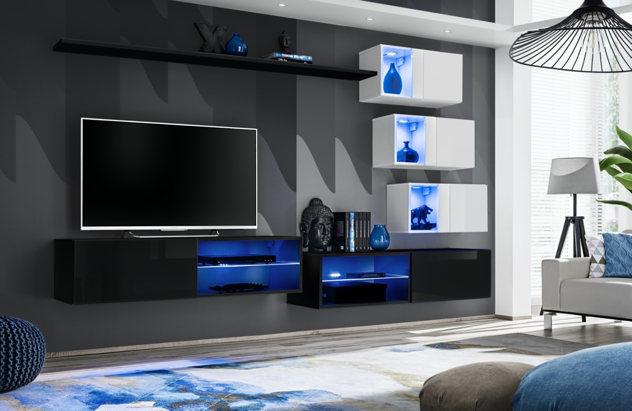 FORMERA Sydney 24 LED AV schwarz/weiß Hochglanz, Schrankwand, Mediawand, Wohnwand modern