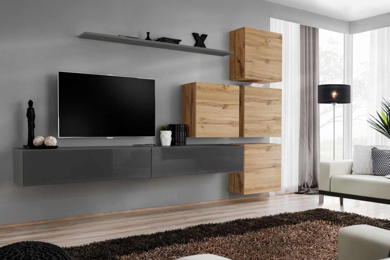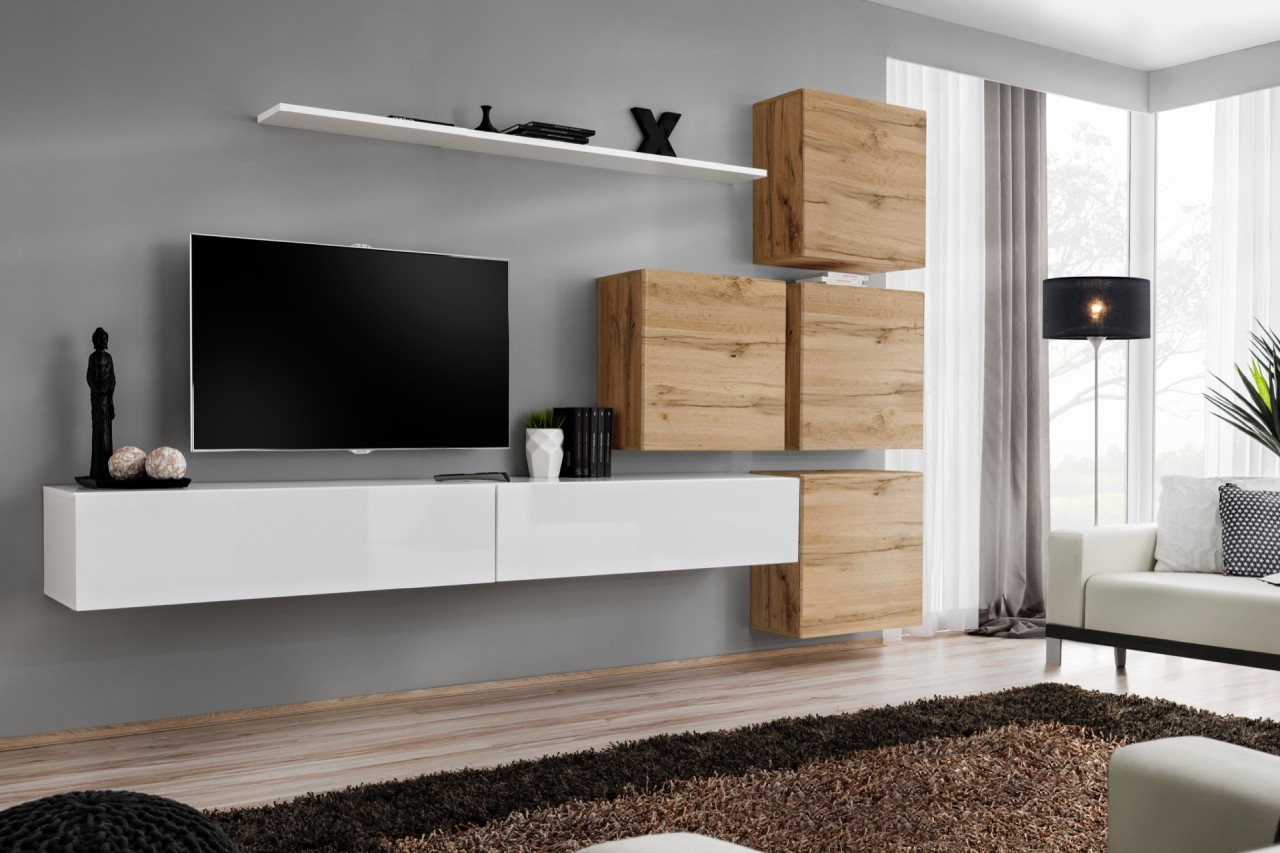 FORMERA Sydney 9 Eiche Hochglanz, TV Wohnwand, Schrankwand, Mediawand, Wohnzimmerwand, Anbauwand